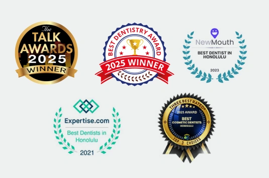 A Downtown Dental Group has been recognized time and time again for our outstanding service to our patients. We are grateful to have received several prestigious awards, such as Honolulu Magazine’s Best Dentist award, Talk of the Town’s Outstanding Patient Relations award, one of the top 20 Honolulu dentists selected by Expertise, one of the top three cosmetic dentists in Honolulu by ThreeBest Rated®(multiple times, including 2023 and 2025), The Best Dentistry Award for 2022, The Talk Award Winner for 2022, and a NewMouth Best Dentist in Honolulu for 2023.